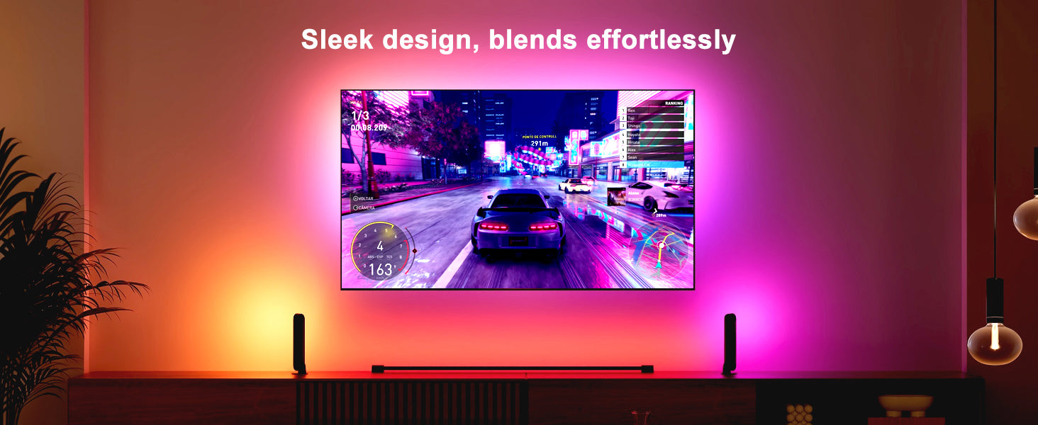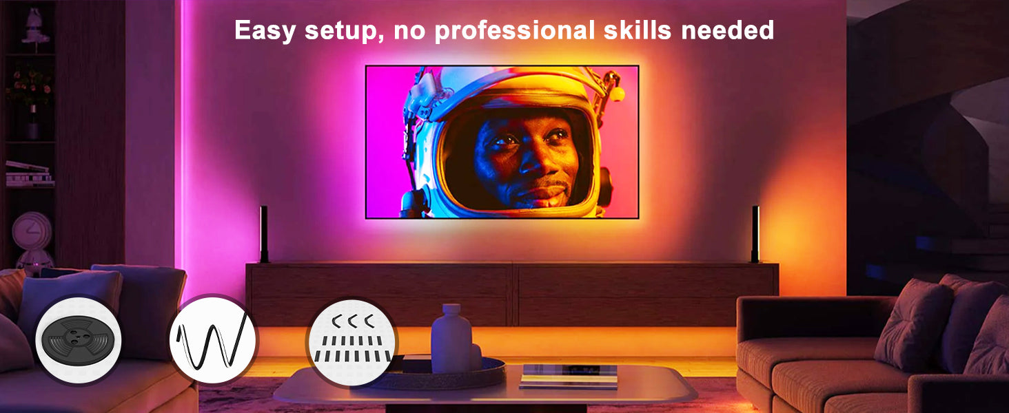 High-brightness LEDs with a wide beam angle illuminate the back of your TV for an immersive atmosphere.